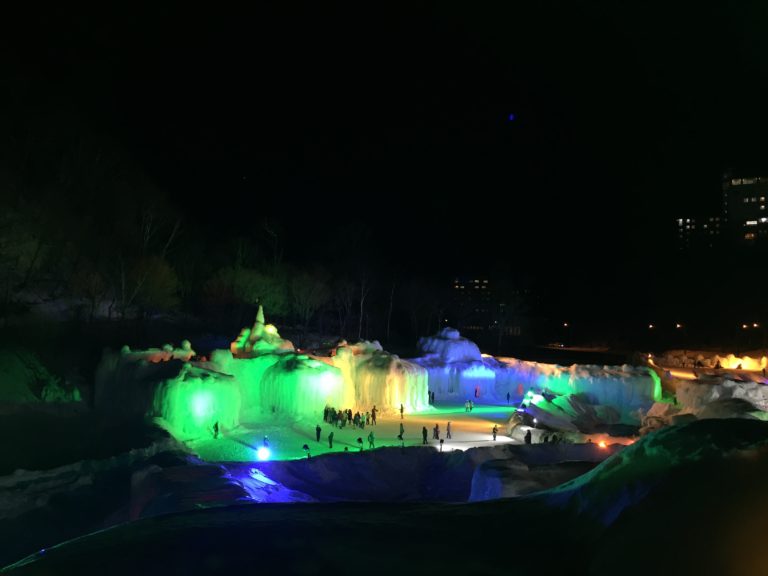 ライトアップされた氷像を見たり、氷のアクティビティを楽しむ氷の祭典。
