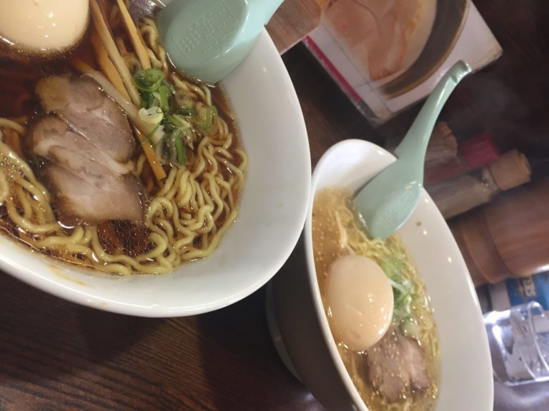 各店でハーフラーメン(小ラーメン)があるため、はしごも可能。