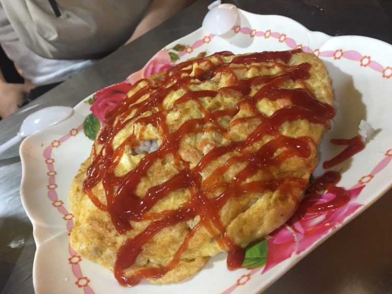 ラチャダー鉄道市場にあるお店。カイチャオムーサップ(タイオムレツ)を食す。