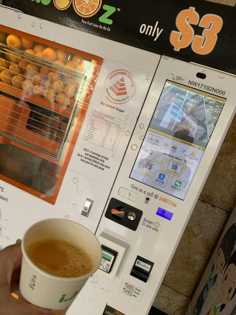 オレンジをその場で絞ってジュースにする自販機。