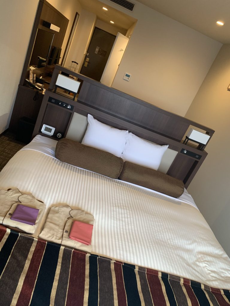 函館ベイエリア方面、函館駅方面どちらにも行きやすい立地。空室があったようで、大きいベッドの部屋に無償アップグレードしてくれた。