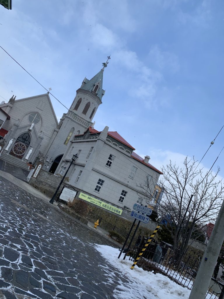 ゴシック建築を用いた大鐘楼が特徴の教会。函館・元町を代表する3教会の一つ。