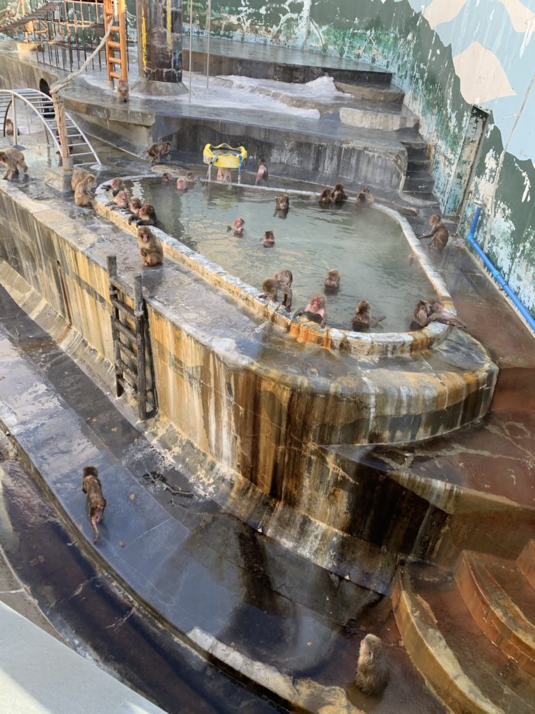 サル山には温泉があり、温泉に入るサルを見ることができる。