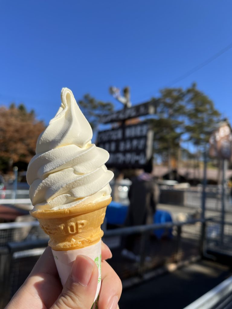 名物のソフトクリーム以外にも食事あり。動物との触れ合いもできる。