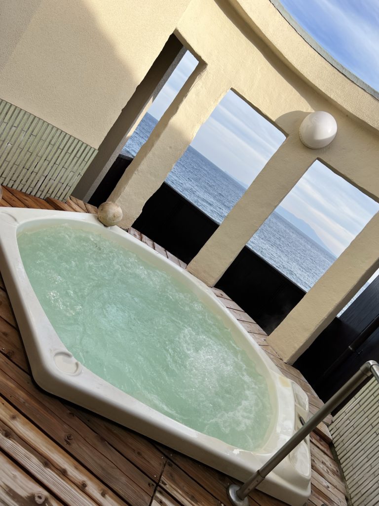 全客室がオーシャンビューで、無料貸切風呂が3つあるホテル。