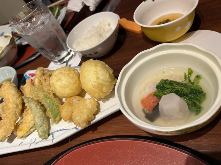 テーブルオーダーで天ぷらが食べ放題なのは、個人的に◎。塩や天つゆもあり。