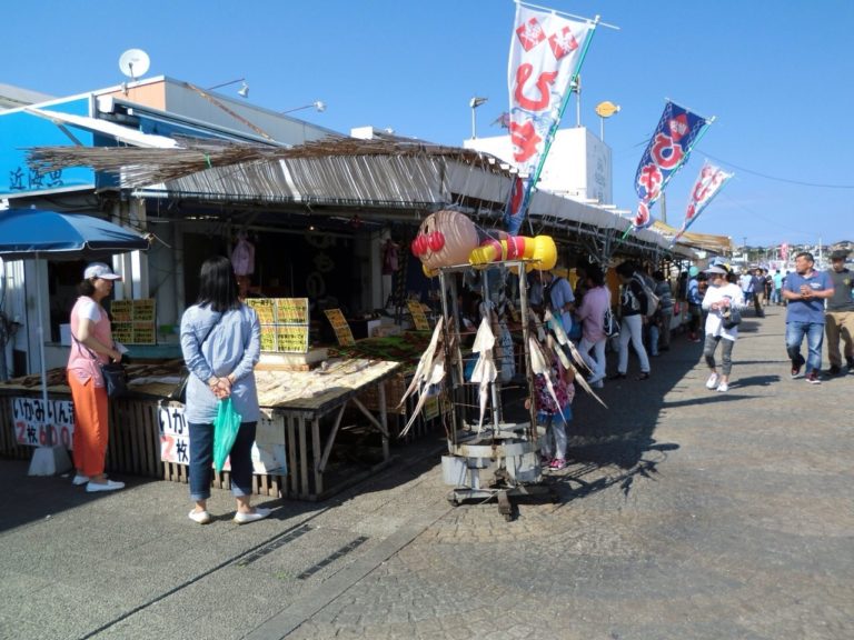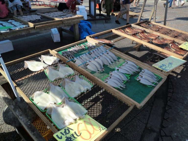 那珂湊駅から歩く場合、水族館方面にあるので立ち寄りやすい。海鮮串焼き等、食べ歩きもできて楽しい。
