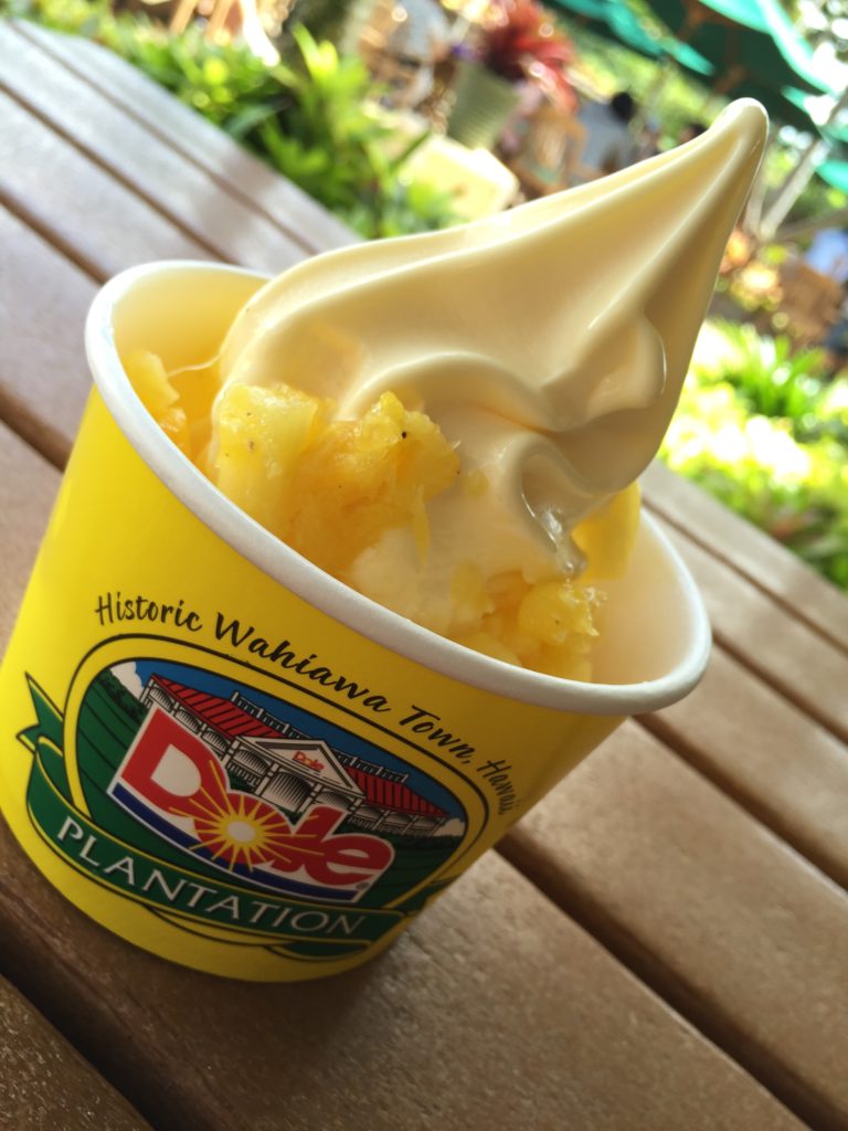パイナップルのアイスは果肉のトッピングもあり美味。