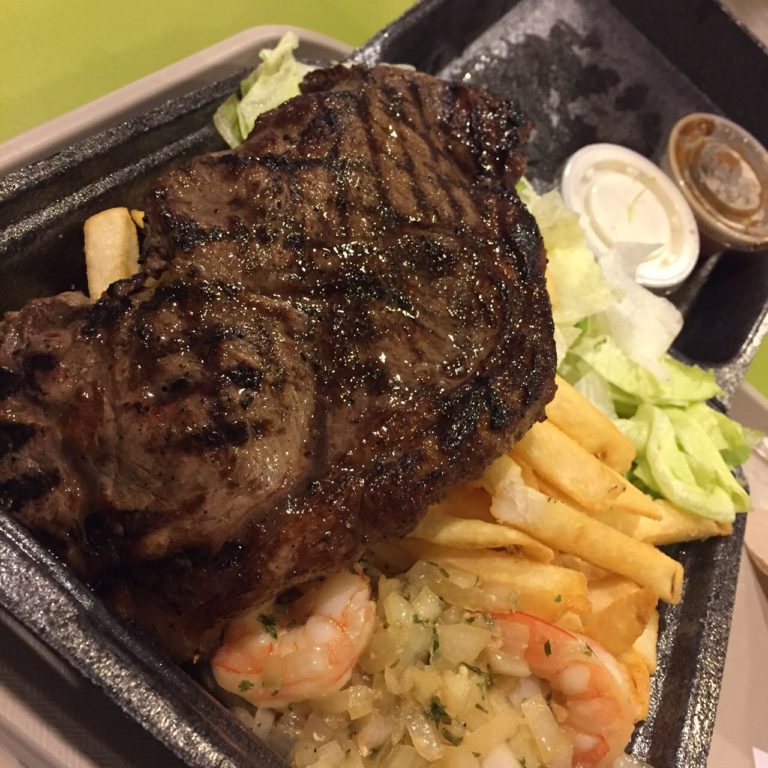安価に焼きたてのステーキを食べることができる。ワンプレートにご飯とサラダも付いているが、ご飯のみやサラダのみに変更できる。