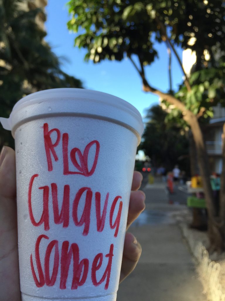 夕方には、特定の味が売り切れてしまっている場合あり。お気に入りのグアバシャーベットは売り切れていた。