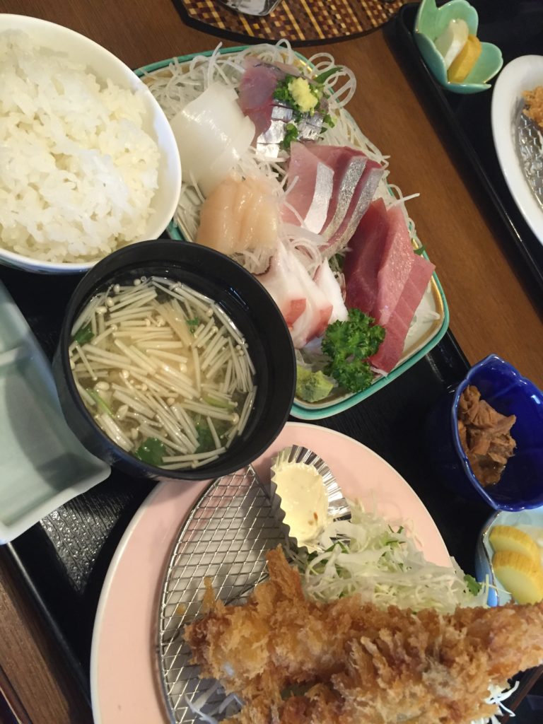 アジフライがふわふわで美味。