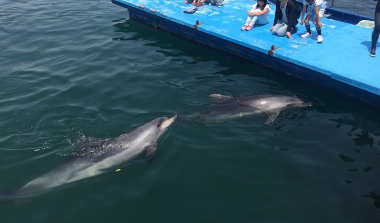 カメ、アザラシ、イルカ等に餌やりができる。