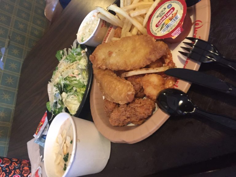 トリオプレート(エビ・魚・チキンのフライ)+クラムチャウダー@Columbia Harbour House